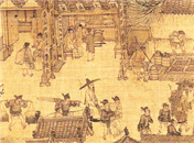 從《清明上河圖》上可以清晰地看到,商人比比皆是,商品琳瑯滿目。汴河兩岸店鋪林立,街道上游人如織。穿過(guò)城門進(jìn)入內(nèi)城,更是一派熱鬧繁華光景。 ??在市場(chǎng)布局上,汴京打破了唐朝市坊分家的格局,商鋪開(kāi)設(shè)較為自由,除了固定鋪面,游商還可沿街叫賣或擺攤設(shè)點(diǎn)。