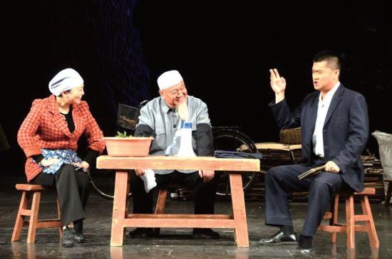 演出充分展現(xiàn)出了寧夏演藝集團(tuán)話劇院表演藝術(shù)家的藝術(shù)功底:如馬明霞的扮演者郁文娟、蘇生林的扮演者蘇黎、馬福順的扮演者張風(fēng)倫、劉冬菊的扮演者刑穎等,都是通過富有草根氣息的語言、形體和神態(tài)在舞臺(tái)上塑造了一個(gè)個(gè)來自生活底層的人物形象,體現(xiàn)出了回漢農(nóng)民的質(zhì)樸氣質(zhì)。我以為,這種現(xiàn)實(shí)主義表演功底是寧夏話劇藝術(shù)家們多年身處基層,深入生活,多年在回漢普通人民藝術(shù)形象創(chuàng)造的經(jīng)歷中鍛煉出來的。觀眾被演員的表演說服、感動(dòng),我從觀眾的掌聲中聽到他們對(duì)表演的贊賞,聽到了對(duì)寧夏話劇院多年來堅(jiān)持在基層演出的敬佩。