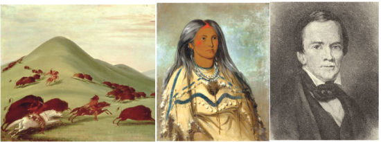 印第安人本是美洲最古老的民族,從16世紀起遭到歐美白人殖民主義者的種族滅絕,瑪雅、印加和阿茲特克神秘超驗的文明被破壞,劫后余生者或退入 山林,或被驅趕進“保護地”,境況悲慘。美國詩人朗費羅的代表作《海華沙之歌》就是印第安民族苦難的寫照。他的同時代人喬治·卡特林(George Catlin,1796-1872)則拿起彩筆描繪早期美洲被欺凌民族的群體肖像,被公認為歷史上最富于人道的“印第安畫家”。
