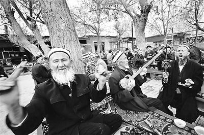 圖為喀什地區(qū)莎車縣阿曼尼沙汗公園內(nèi),民眾觀看木卡姆藝人演唱。 圖片來源:中國旅游報