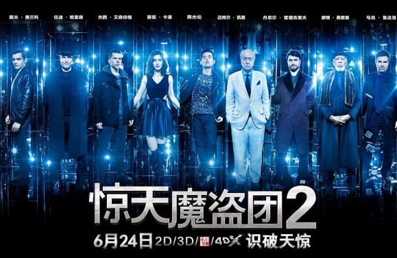 由美籍華裔導(dǎo)演朱浩偉執(zhí)導(dǎo),杰西·艾森伯格、伍迪·哈里森、戴夫·弗蘭科、麗茲·卡潘、“綠巨人”馬克·魯法洛、邁克爾·凱恩、摩根·弗里曼聯(lián)合周杰倫、“哈利·波特”丹尼爾·雷德克里夫主演的高智商犯罪動(dòng)作巨制《驚天魔盜團(tuán)2》正在以2D、3D、4DX以及中國巨幕格式在內(nèi)地?zé)嵊场?/p>