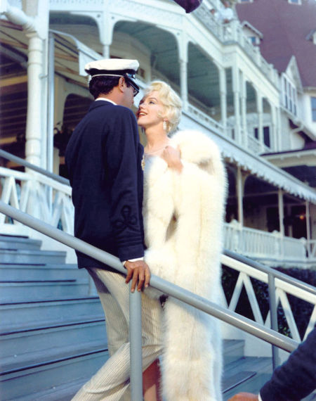 沒有人是完美的,可對(duì)甜甜這類空有美貌的、傻傻地想釣金龜婿的金發(fā)女郎,懷爾德施與的同情遠(yuǎn)遠(yuǎn)不如對(duì)“男伴”多。懷爾德對(duì)甜甜的刻薄,我也是這 次電影節(jié)才看到的。初見時(shí),兩位男主角形容她是“裝了彈簧的果凍”;男女主角第一次傾心交談,她上趕著說自己“沒腦子”;最后她剛剛得知被騙,立刻追上再 度逃走的喬,理由還是“我很笨”。