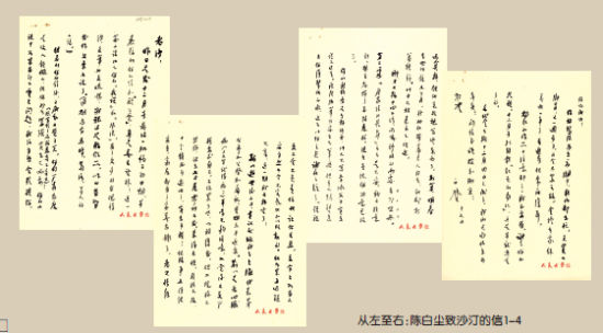 文學(xué)館藏陳白塵致沙汀信一封,用“人民文學(xué)”箋,毛筆豎行寫,字體遒勁,落筆灑脫,滿滿4頁紙,不刪不改一氣呵成。抬頭直呼“老沙”,足見彼此間的熟稔。是私人通信而無私密可言,信筆所記都是當(dāng)年的文壇大事。一封信關(guān)系兩位文化名人,無論從什么角度看都是不可多得的“文獻(xiàn)”“文物”。 “窖藏”半個多世紀(jì)之后抄錄于此,再加上些拉拉雜雜的“漫說”以助讀。