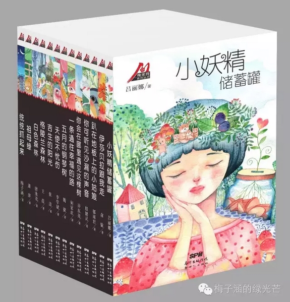 讀完了梅子涵的序言,再來看看為這套書書寫的有哪些學生,他們是:郁雨君《趴在地板上的小姑娘》、殷健靈《你可聽見沙漏的聲音》、唐池子《白色森林》、蕭萍《祖母綠》、李學斌《天使不憂傷》、呂麗娜《小妖精儲蓄罐》、王蓓《格陵蘭森林》、張潔《吉生的陽光》、魏捷《五月的鋼琴樹》、俞愉《伊莎貝拉跟我走》、何家歡《一條通往幸福的路》、許東堯《你會在哪里遇見這棵樹》。