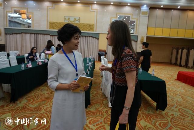 鐵凝與意大利漢學(xué)家雪蓮在開幕式后展開交流