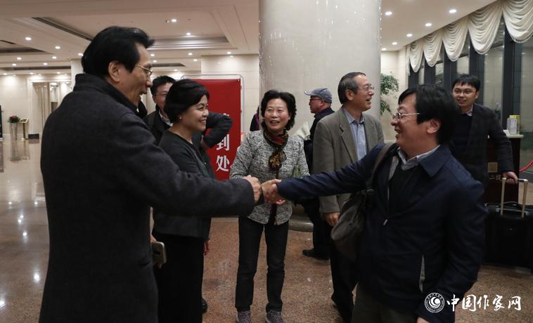 11月28日,中國作協(xié)主席鐵凝、副主席何建明迎接上海代表團(tuán)。