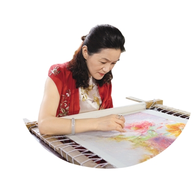 圖①:姚建萍在進行刺繡創(chuàng)作。