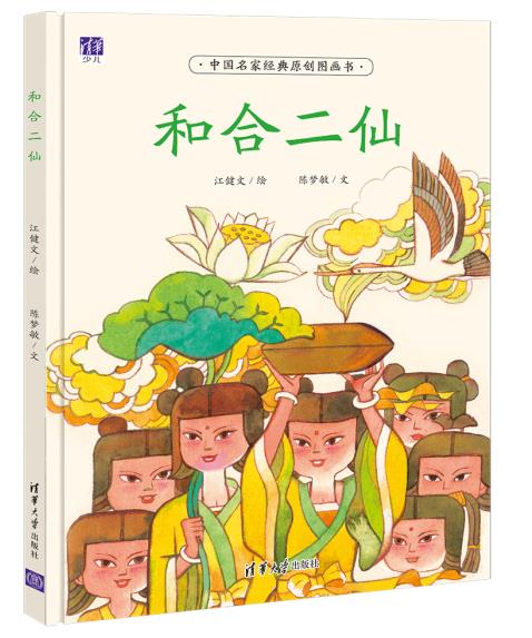 兩個(gè)小童子,在蛟龍行雨后,出生在湖面的荷花和木盒里。有他們?cè)?,人們生活得和和美美。他們離開了,人們便會(huì)猜疑不斷,矛盾重生,爭(zhēng)吵不止。他們就是傳說(shuō)中的和合二仙?!逗秃隙伞反罅拷梃b了中國(guó)民間年畫的特點(diǎn)。作品中的形象都來(lái)自于中國(guó)傳統(tǒng)的民間年畫,作者還有意將云氣、水草、竹干、荷花等等都進(jìn)行了形體上的歸納,使之具有極強(qiáng)的平面感與裝飾性。生動(dòng)有趣,烘托出了一種歡樂(lè)祥和的氣氛,與荷盒二仙的“和合”主題相呼應(yīng)。