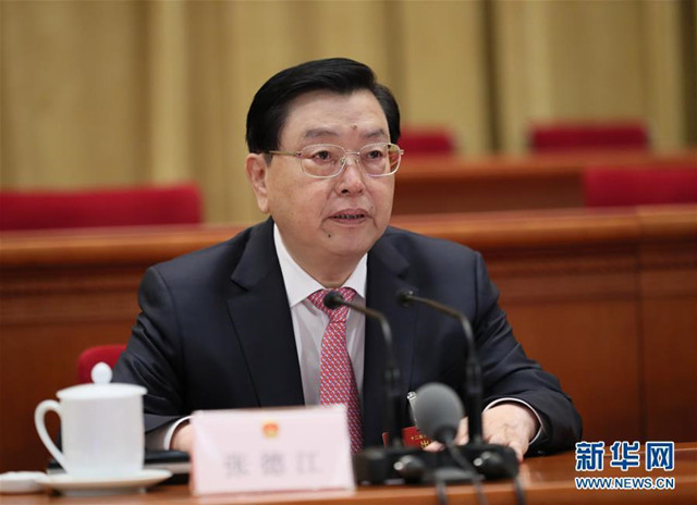 張德江在主持會議時宣布:十二屆全國人大五次會議于3月5日召開,大會的各項準(zhǔn)備工作已經(jīng)全部就緒。