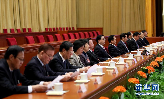 3月4日,十二屆全國人大五次會議在北京人民大會堂舉行預(yù)備會議。全國人大常委會委員長張德江主持會議。 新華社記者 蘭紅光 攝