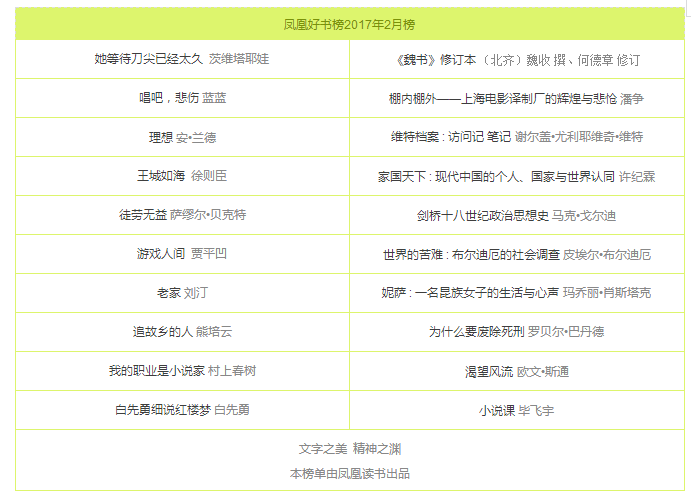 鳳凰好書(shū)榜2017年2月榜(20種)