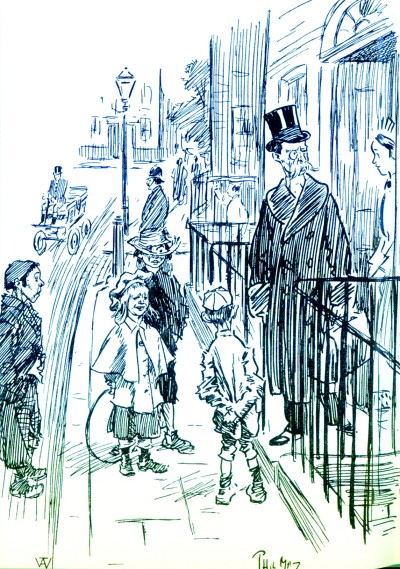 初看菲爾·曼的作品,以為是倫敦版的張樂平。那些長長短短的線條,急促有力,快照一樣攝下乞丐、酒鬼、學徒、童工、紳士和貴婦的各式面孔,記錄著十九世紀倫敦街頭的三教九流。就如《三毛流浪記》中的上海灘,既有盛世繁華,也有凄慘悲涼。而菲爾·曼就靜靜地坐在街角的某個酒館,豎著風衣的領子,叼著煙卷,含笑打量著眼前的眾生百態(tài)。他是一個酒鬼,每天要喝掉三四瓶威士忌!不知道是不是因為喝酒誤事,導致他經(jīng)常不能及時交稿。但因為他的作品太受歡迎了,主編發(fā)話:只要是他的畫,無論什么內容,都按五英鎊一幅的價格收購回來!畫筆成了印鈔機,菲爾先生當然不愁買酒錢了。
