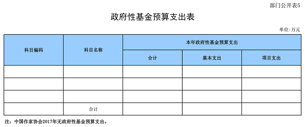 中國(guó)作家協(xié)會(huì)2017年沒(méi)有政府性基金預(yù)算支出。
