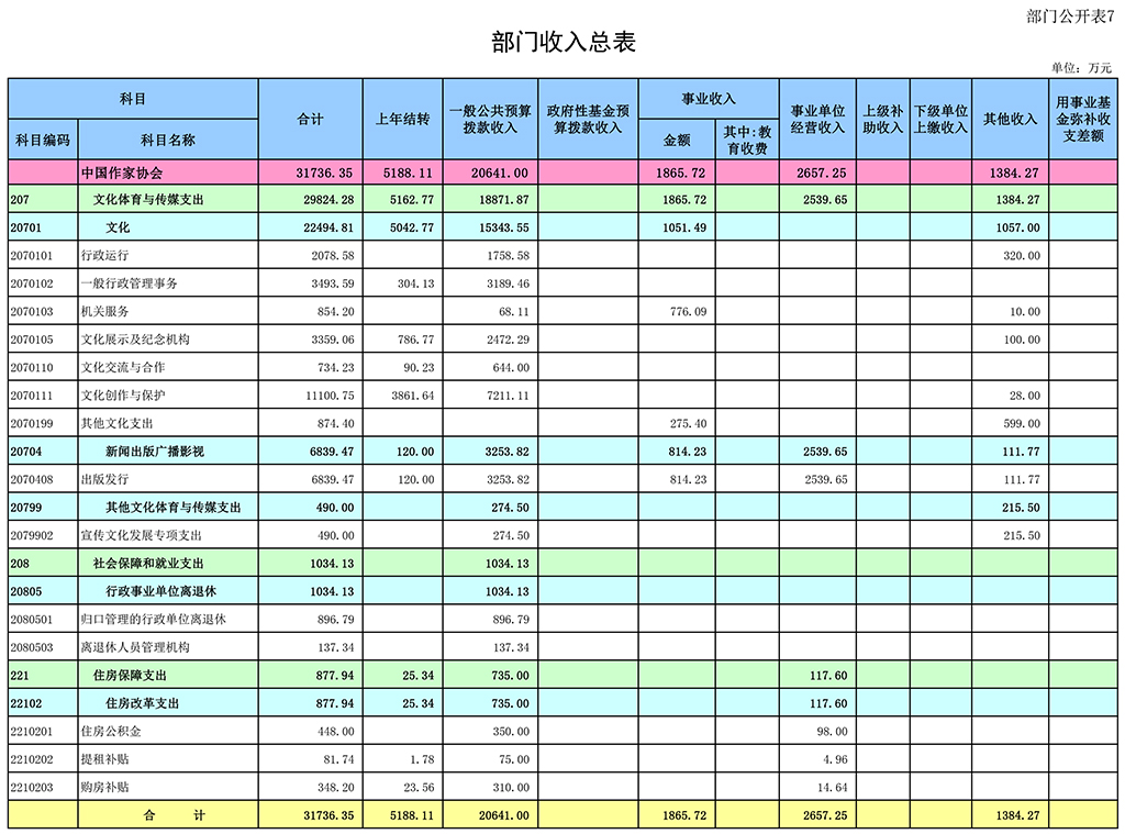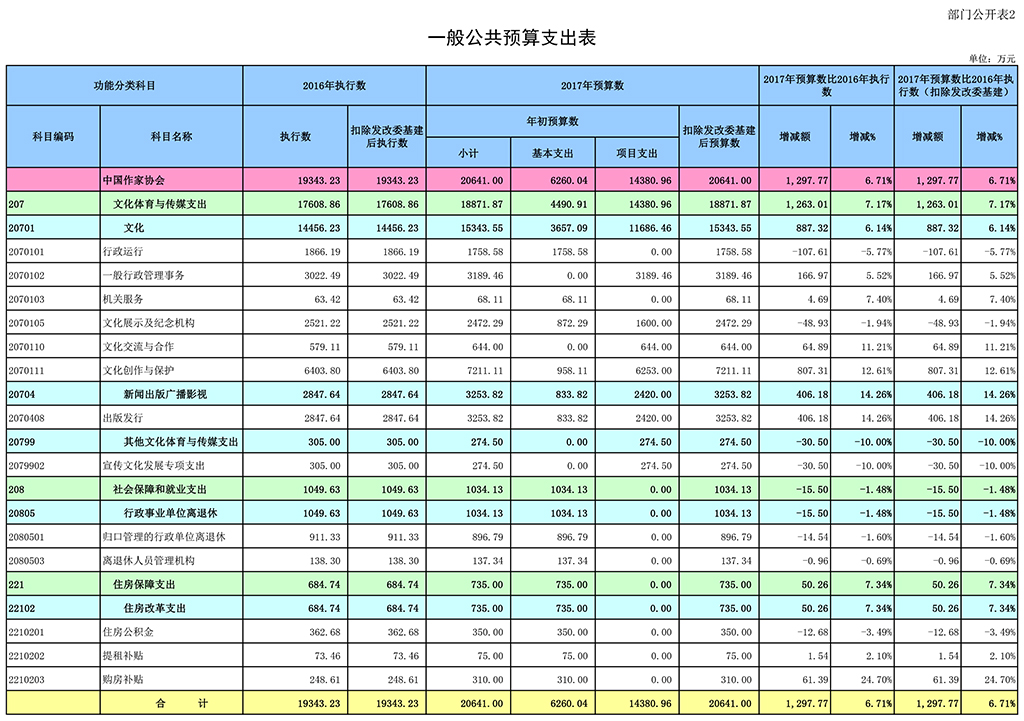 2017年中國(guó)作家協(xié)會(huì)部門(mén)預(yù)算報(bào)表如下: