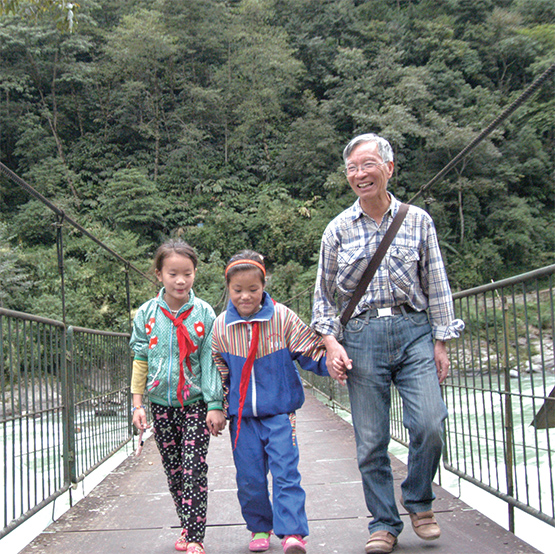 吳然和孩子們。馮牧筆下巴坡小學(xué)旁古老的藤索橋,如今已是安全牢固的鋼索吊橋。