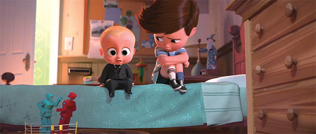 在由夢(mèng)工場(chǎng)出品的動(dòng)畫(huà)電影《寶貝老板》中,使用了不少段落來(lái)塑造孩子眼中或腦中的世界;換句話說(shuō),也就是對(duì)角色想象和心理活動(dòng)的表達(dá)。正如影片開(kāi)頭時(shí)男主角提姆的自述獨(dú)白:“你知道,當(dāng)時(shí)我7歲。而那時(shí)候,你總是依靠你的想象力?!?/p>