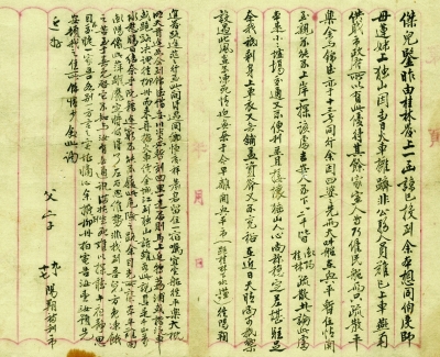此信寫于1944年,家書作者盧明璇,字玉衡,江西吉安盧家洲人。少年時(shí)代赴湖南衡陽(yáng)族人所開的典當(dāng)鋪?zhàn)鰧W(xué)徒。因勤奮好學(xué),辦事干練,在商號(hào)漸有發(fā)展。后獨(dú)資開辦鞋店,擔(dān)任錢莊經(jīng)理,先后出任衡陽(yáng)縣商會(huì)委員、常委、副會(huì)長(zhǎng)。1944年4月,日寇坂垣兵團(tuán)大舉進(jìn)犯衡陽(yáng)。衡陽(yáng)守軍在衛(wèi)戍司令方先覺將軍率領(lǐng)下奮起反擊。衡陽(yáng)保衛(wèi)戰(zhàn)持續(xù)49天,終因敵我力量懸殊,衡陽(yáng)淪陷。戰(zhàn)事后期,盧明璇與同鄉(xiāng)結(jié)伴西撤,欲往桂林尋找在交通銀行工作的兒子盧達(dá)杰。逃亡途中,他不幸遭遇日寇,為其所俘并被迫當(dāng)了挑夫。所幸不久他乘隙逃出敵人的魔爪,后幾經(jīng)輾轉(zhuǎn),備嘗艱辛,于1944年9月17日抵達(dá)廣西陽(yáng)朔一個(gè)叫福利市的小鎮(zhèn)。此時(shí),饑寒交迫,孤苦伶仃,遠(yuǎn)望家鄉(xiāng),云山隔斷,遂寫下了這封求助的家書。寄出這封信不久,盧明璇離開福利市流落到柳州,后因身患瘧疾,缺醫(yī)無藥,不幸病故。然而當(dāng)時(shí)正值戰(zhàn)亂,郵路不通,直至抗戰(zhàn)勝利后,這封家書才經(jīng)由衡陽(yáng)交通銀行投遞到已在屯溪交通銀行任職的盧達(dá)杰手中,得以保存下來。 (張丁 整理)