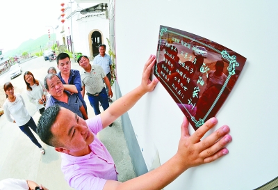 江西省鉛山縣,黨員干部在村民家門口掛“家訓(xùn)”牌。丁銘華攝/光明圖片