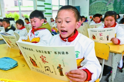 合肥市瑤海區(qū)蚌埠路第三小學(xué),孩子們在閱讀朗誦“傳承好家風(fēng),弘揚正能量”系列讀本。解琛攝/光明圖片