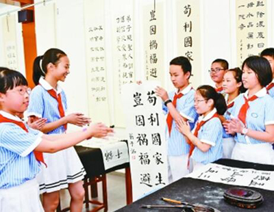 福州市瑯岐實(shí)驗(yàn)小學(xué),同學(xué)們?cè)谡故咀约簳?shū)寫(xiě)的名人家風(fēng)家訓(xùn)。新華社發(fā)