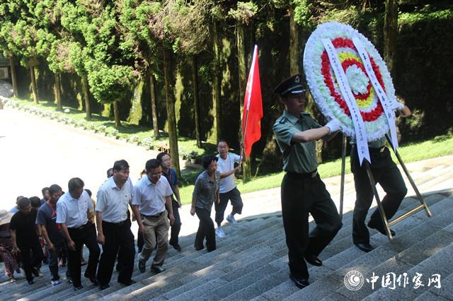 7月12日清晨,細(xì)雨過(guò)后的井岡山晨光初現(xiàn)。中國(guó)作協(xié)“迎接黨的十九大暨紀(jì)念建軍九十周年”主題采訪(fǎng)團(tuán)早早抵達(dá)井岡山革命烈士陵園,在井岡山市委書(shū)記劉洪的主持下舉行了莊嚴(yán)的祭奠儀式。中國(guó)作協(xié)副主席閻晶明率領(lǐng)采訪(fǎng)團(tuán)全體成員向革命烈士敬獻(xiàn)花圈、默哀鞠躬,懷著肅穆的心情深切緬懷為中國(guó)革命事業(yè)英勇?tīng)奚南攘?。在陳列室和忠魂堂,采訪(fǎng)團(tuán)的作家們仔細(xì)端詳著革命先烈的每一張照片,觸摸著鐫刻在墻壁上的革命英烈的名字。大家的心靈深受震動(dòng),進(jìn)一步加深了對(duì)井岡山命老區(qū)的認(rèn)識(shí)與了解,直觀地了解和感受到了井岡山精神。作家們表示,文學(xué)工作者要自覺(jué)從中汲取奮發(fā)向上的精神力量,創(chuàng)作出更多閃耀著紅色光輝,同時(shí)關(guān)切時(shí)代、關(guān)注現(xiàn)實(shí)的優(yōu)秀文學(xué)作品,正如習(xí)近平總書(shū)記在井岡山考察時(shí)指出的,要結(jié)合新的時(shí)代條件,堅(jiān)定執(zhí)著追理想、實(shí)事求是闖新路、艱苦奮斗攻難關(guān)、依靠群眾求勝利,讓井岡山精神放射出新的時(shí)代光芒。