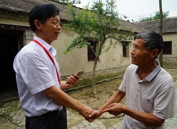 文昌宮不遠處,便是淮海戰(zhàn)役總前委指揮部的另一處舊址——小李家。小李家是當時濉溪縣的一戶姓李的人家。13日,采訪團到小李家的時候,一位叫李松林的老人正在院子里打掃房屋,老人是這個房子的老房東,當時就是他的父親李光者主動把房子讓給解放軍的。現(xiàn)在的小李家已經(jīng)成為紅色革命根據(jù)地,每天都會有人前來參觀,李松林幾十年來堅持在這個院子里為大家作義務講解。老人告訴大家,當年劉伯承、鄧小平、陳毅從文昌宮轉(zhuǎn)移后,就在這里工作和生活?!拔腋赣H告訴我,鄧小平同志還抱過我呢,只是沒有留下照片?!崩先苏f這句話時,臉上露出憨厚而自豪的笑容。“我也姓李,你們家曾為革命、為國家付出這么多,是咱們李姓的驕傲”,團員李西岳與老人緊緊地握著手說。