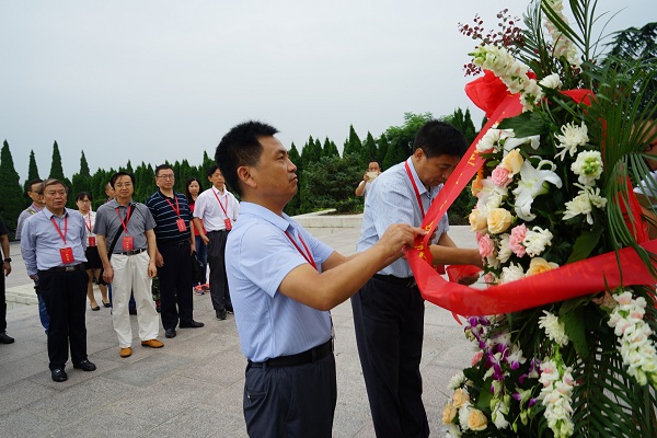 采訪團在淮海戰(zhàn)役烈士紀念塔前合影