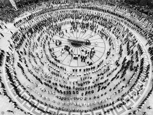 苗族民間信仰認(rèn)為,人的誕生是其靈魂通過“橋”而降生肉體,苗族每年農(nóng)歷二月初二要過“敬橋節(jié)”,意在求子。仰阿莎誕生,用什么架橋呢?人們想到了蒿桿、杉樹、青石、松樹、泡桐,但都被否定了。因?yàn)檠霭⑸谴蟮刂?,大家最后選擇了“水龍樹”。歌師們說“水龍樹”就是彩虹?!八垬渥釉谀沁?,長在水田的源泉,兩頭觸地天地間,天生一座彩虹橋”——把作為男性象征的橋與酷似拱橋的彩虹聯(lián)系在一起,是多么美妙的藝術(shù)創(chuàng)造!