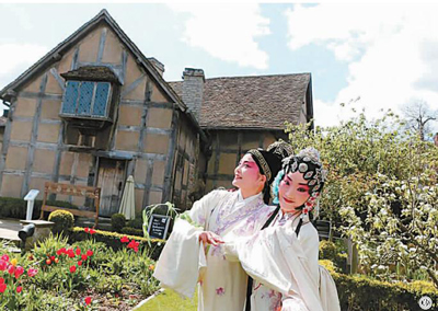 ③為紀念湯顯祖和莎士比亞逝世400周年,來自湯顯祖的故鄉(xiāng)中國江西撫州的演員在英國莎士比亞故居花園表演戲曲。新華社發(fā)