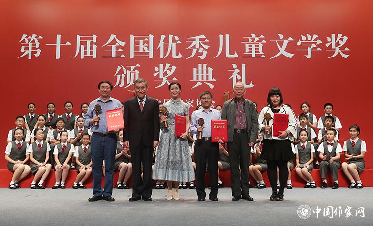 2017年9月22日,第十屆全國優(yōu)秀兒童文學(xué)獎頒獎典禮在中國現(xiàn)代文學(xué)館舉行。中共中央政治局常委、中央書記處書記劉云山,中共中央政治局委員、中央書記處書記、中宣部部長劉奇葆分別作出重要批示,向獲獎的作家表示祝賀,向?yàn)槲覈鴥和膶W(xué)事業(yè)作出貢獻(xiàn)的廣大作家和文學(xué)工作者表示敬意。中國作家協(xié)會主席鐵凝,中國作家協(xié)會黨組書記、副主席錢小芊,中宣部副部長庹震,中國作家協(xié)會黨組成員、副主席、書記處書記吉狄馬加、李敬澤、閻晶明,中國作家協(xié)會黨組成員、書記處書記吳義勤,中宣部文藝局副局長孟祥林,以及兒童文學(xué)界作家、評論家、出版家高洪波、束沛德、金波、樊發(fā)稼、海飛等出席頒獎典禮,并為獲獎作家頒發(fā)獎杯和證書。