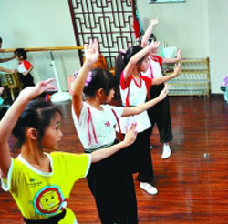 孩子們?cè)谖幕^學(xué)京劇。光明圖片/視覺(jué)中國(guó)