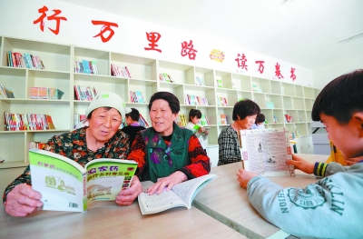 農(nóng)家書屋成為農(nóng)民的新朋友和“致富加油站”。 光明圖片/視覺(jué)中國(guó)
