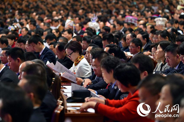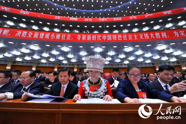 中國共產黨第十九次全國代表大會開幕會現(xiàn)場,代表認真聆聽報告。(人民網記者 翁奇羽 攝)