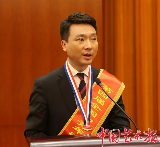 康輝在第四屆全國中青年德藝雙馨文藝工作者表彰大會上發(fā)言 中國藝術(shù)報記者 孟祥寧 攝