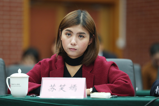 青年詩人蘇笑嫣在座談會上發(fā)言