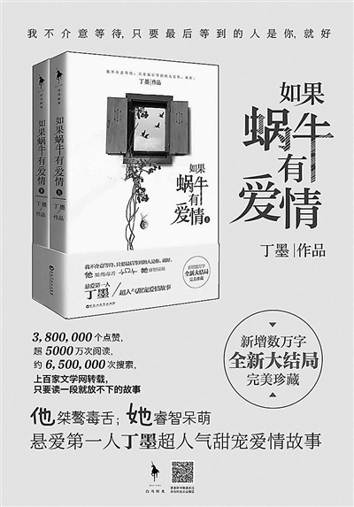 《如果蝸牛有愛情》在感情線的設(shè)計上,丁墨很大膽,用雙視線角度推進這段感情,男女主角都喜歡對方,都用自己的方式去愛對方。一般作者不敢如此設(shè)計,一段沒有懸念的感情,還吸引讀者看下去,就得靠男女主角個性的魅力。小說人物的設(shè)定,其實比行為分析更復雜。
