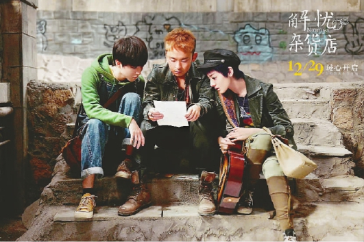 《解憂雜貨店》的“本土化”改編策略無疑是成功的,富有中國傳統(tǒng)倫理情感的表達(dá)相較于之前改編自日本同名影視劇的《深夜食堂》,做到了更接“地氣” ,而片中迪麗熱巴和董子健、王俊凱等“小鮮肉”的表演也可圈可點(diǎn),塑造出了因?yàn)殛P(guān)愛缺失而內(nèi)心自卑的懵懂少年,隨著情節(jié)的一步步發(fā)展,人物也在事件中不斷成長。影片的結(jié)尾,三個(gè)犯下過錯(cuò)的少年決定勇敢地承認(rèn)錯(cuò)誤,他們都是來自彩虹之家的孤兒,而過去那些獲得“解憂”的主人公們也與彩虹之家有著特定的聯(lián)系,情感的紐帶通過在現(xiàn)實(shí)與過去之間穿梭的信件,將不同時(shí)代下的人們連接在一起,使影片最終走向了圓滿的閉合結(jié)局。