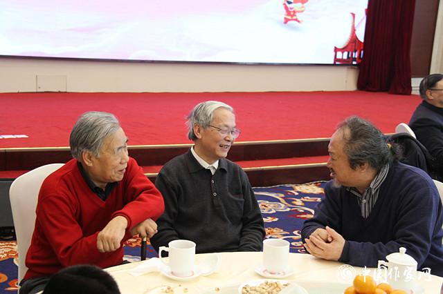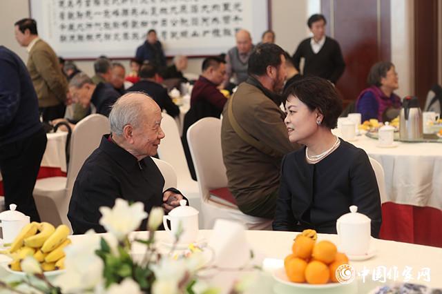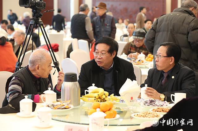 在喜慶歡快的樂曲聲中,鐵凝和錢小芊等中國作協(xié)黨組書記處同志來到老作家老同志身邊,同大家親切握手,問候交談,向大家致以誠摯的新春祝福。老友新朋聚在一起總有聊不完的話題,說不盡的故事,敘不完的情誼。大家互贈新書,拍照合影,回顧過去一年中國文學繁榮發(fā)展所取得的成就,為新一年文學事業(yè)和作協(xié)工作提建議談希望。不忘初心,砥礪前行,這是廣大作家和文學工作者的心聲,也是中國文學由“高原”向“高峰”邁進的強大動力。