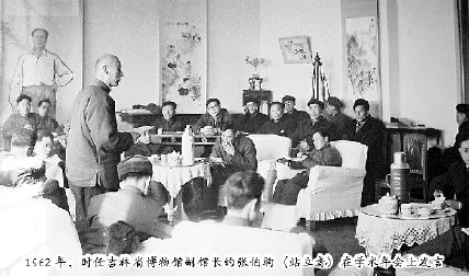1962年,時(shí)任吉林省博物館副館長的張伯駒(站立者)在學(xué)術(shù)年會上發(fā)言。