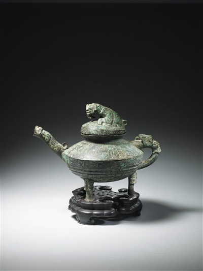 據(jù)拍賣行稱,此“鎣”類器物世上僅存7件,其中5件均收藏在博物館。此次被拍賣的虎鎣,是一件盛水器物,器型比較特別,因三個(gè)腿柱不同于常見的圓錐體腿柱,而是圓柱體。且罕見的“老虎”塑像也少見。