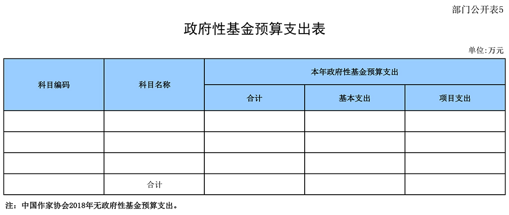 中國作家協(xié)會(huì)2018年沒有政府性基金預(yù)算支出。