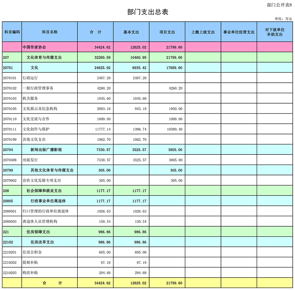 七、文化體育與傳媒(類)文化(款)行政運(yùn)行(項(xiàng)):指中國作協(xié)本級(jí)用于保障機(jī)構(gòu)正常運(yùn)行、開展日常工作的基本支出。