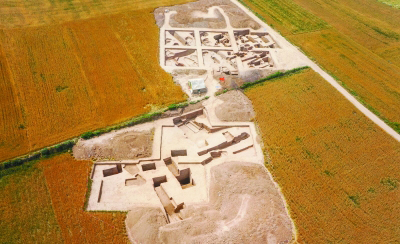 出土水稻遺存的東陽遺址(無人機(jī)拍攝)。新華社發(fā)