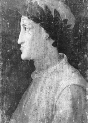 這幅木板油畫描繪的是意大利最偉大的詩人、西歐文學(xué)巨擘之一——但?。?265年- 1321年) 。與紀念章一樣,我們看到的只是詩人的側(cè)面,頭上戴著月桂樹枝條編制的桂冠,象征其詩歌創(chuàng)作上的成就。