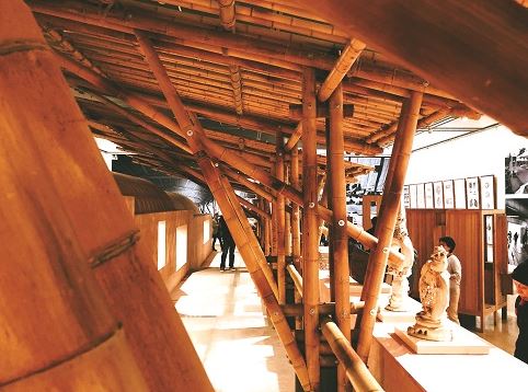 學院在教學創(chuàng)作中號召師生扎根生活,倡導“勞作上手、讀書養(yǎng)心,像哲人般思考、如工匠般勞作”的理想,就是希望能繼民學精神,再興鄉(xiāng)土生活,借藝術讓人民的生活更美好?!拔铱椢以凇薄氨就翣I造”“天工開物”所呈現(xiàn)的便是貫徹這一理念的教學最新現(xiàn)場。在“我織我在”的空間中,數(shù)百條由師者編織的千變萬化的繩結里,貫穿著數(shù)組學生的編織作品,讓觀者體驗到“身心發(fā)動、情義直觀”的東方藝術真諦,也感悟到上手的技藝與造物思想的關聯(lián);“天工開物”則向我們展現(xiàn)了陶瓷、漆器、玻璃、首飾等與棲居空間相融相依的手工藝品;“本土營造”聚焦于“復興融通自然、城市、建筑和造園的整體性”之大命題,這個極具泥土氣息的營造現(xiàn)場,背后凝聚了大量的鄉(xiāng)土調查與實踐摸索。