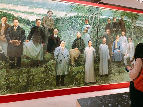 一進入中國美術館的大廳,3米高、9米長的4張巨幅油畫上,來自不同時代的前輩先師們向我們投來深邃而殷切的目光,是期盼,更是囑托。這四組群像描摹出從1928年建校到改革開放新時期幾代藝術教育者的不朽精魂。