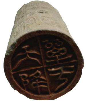 1955年,內(nèi)蒙古自治區(qū)包頭市召灣漢墓出土“天降單于”瓦當(dāng),充滿濃郁的邊疆風(fēng)格。這件西漢時(shí)期的瓦當(dāng),直徑17.1厘米,圓形,后有筒,筒中部有瓦釘孔;正面寬沿,被十字格線分成四區(qū),每區(qū)內(nèi)一陽(yáng)文篆字,即“單于天降”四個(gè)字。