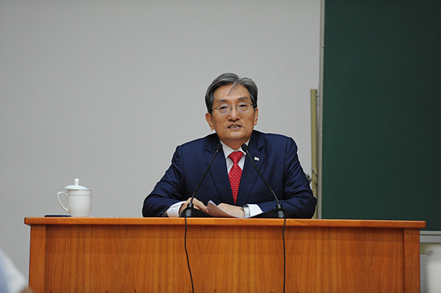 隨后,盧英敏大使為正在魯院學(xué)習(xí)的第三十四屆中青年作家高級研討班學(xué)員作了題為“大使眼中的唐詩”的講座,重點(diǎn)向?qū)W員們講述他對我國唐代詩人杜甫及其詩作的鐘愛與理解,對杜甫詩句中體現(xiàn)的現(xiàn)實(shí)主義、“仁愛”思想以及憂國憂民的人道主義情懷進(jìn)行了闡述,并簡要介紹了以杜甫詩歌為代表的唐詩對韓國文化的影響。