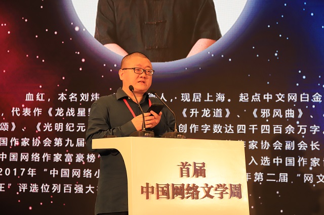 我是血紅,一個(gè)寫(xiě)了十六年網(wǎng)文,還在堅(jiān)定、堅(jiān)持地努力創(chuàng)作的網(wǎng)絡(luò)作者。非常榮幸參加這次盛會(huì),受邀作為作家代表發(fā)言,于是也想說(shuō)一些感觸。