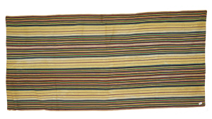獨(dú)龍?zhí)河址Q為“約多”,一般寬約1米,長(zhǎng)約2米,結(jié)實(shí)耐磨,使用方便,晝可為衣、夜可當(dāng)被。傳統(tǒng)獨(dú)龍?zhí)憾酁閶D女用腰機(jī)織成,原料和染料均取自天然。厚實(shí)的質(zhì)地多為麻、火草棉等純天然纖維紡線織成,豐富的彩條顏色來(lái)源于不同的植物汁液。1949年以來(lái),內(nèi)地的棉毛線陸續(xù)進(jìn)入獨(dú)龍江地區(qū),婦女們遂用各色的棉毛線與麻線混織獨(dú)龍?zhí)海滟|(zhì)地更加柔軟,條狀紋飾更加美觀。